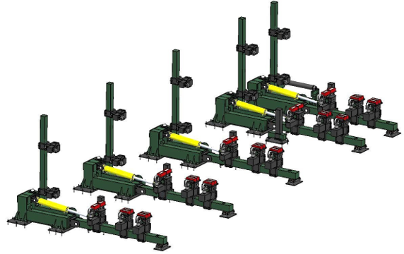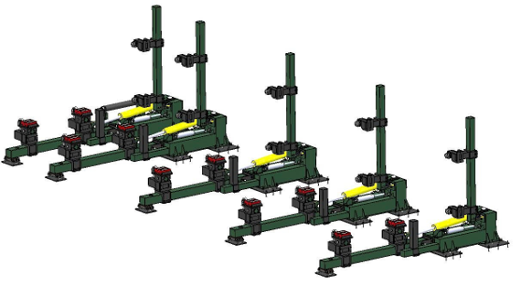 - Mỗi nhóm gồm 5 cụm khung lật độc lập, hoạt động đồng thời, giúp tạo góc nghiêng phù hợp với yêu cầu hàn, đính.