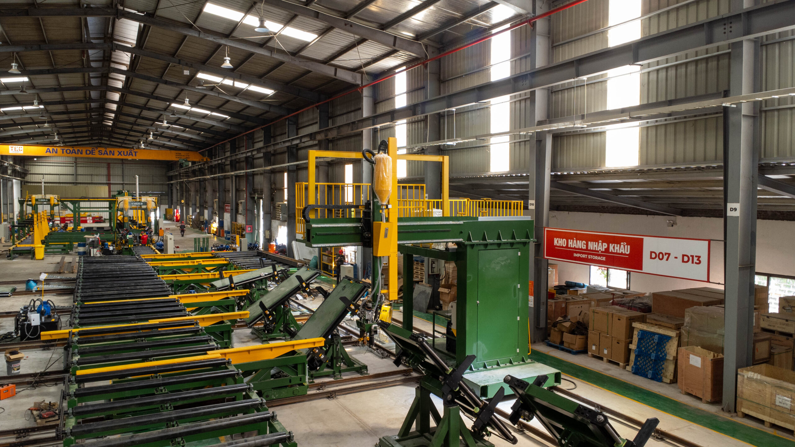 - Kho lưu trung gian và băng tải chuyển phôi tự động